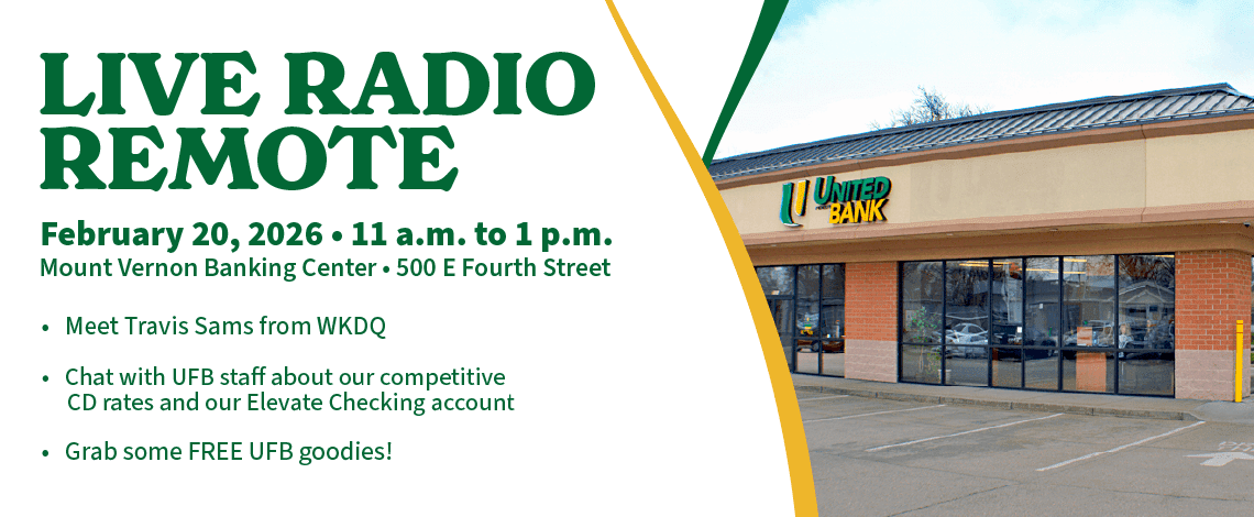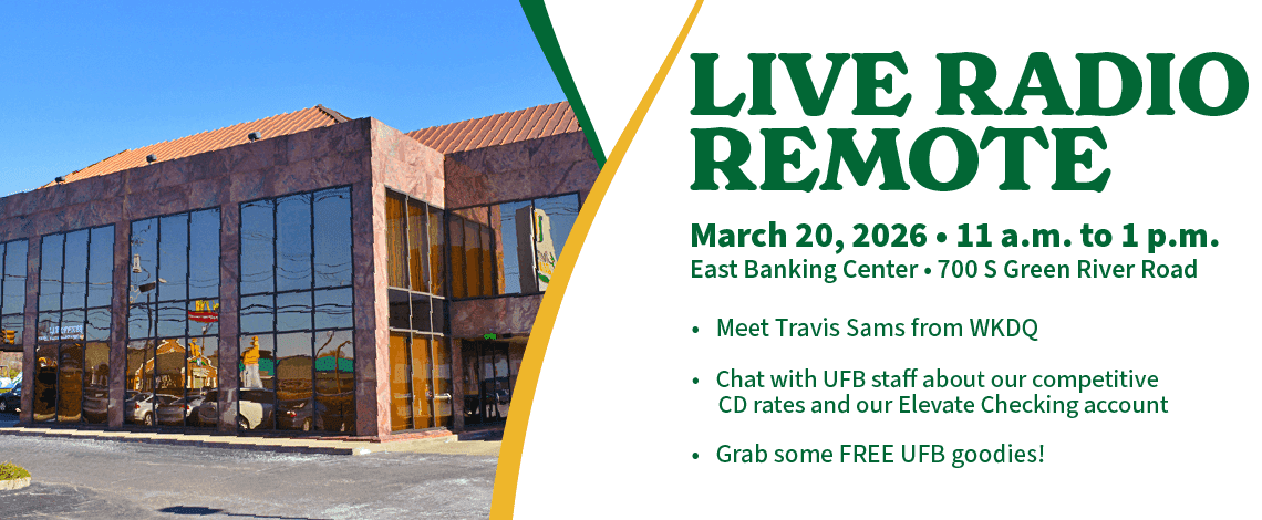 United Fidelity Bank provides links to web sites of other organizations in order to provide visitors with certain information. A link does not constitute an endorsement of content, viewpoint, policies, products or services of that web site. Once you link to another web site not maintained by United Fidelity Bank, you are subject to the terms and conditions of that web site, including but not limited to its privacy policy.