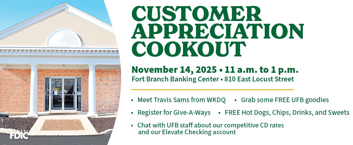 United Fidelity Bank provides links to web sites of other organizations in order to provide visitors with certain information. A link does not constitute an endorsement of content, viewpoint, policies, products or services of that web site. Once you link to another web site not maintained by United Fidelity Bank, you are subject to the terms and conditions of that web site, including but not limited to its privacy policy.